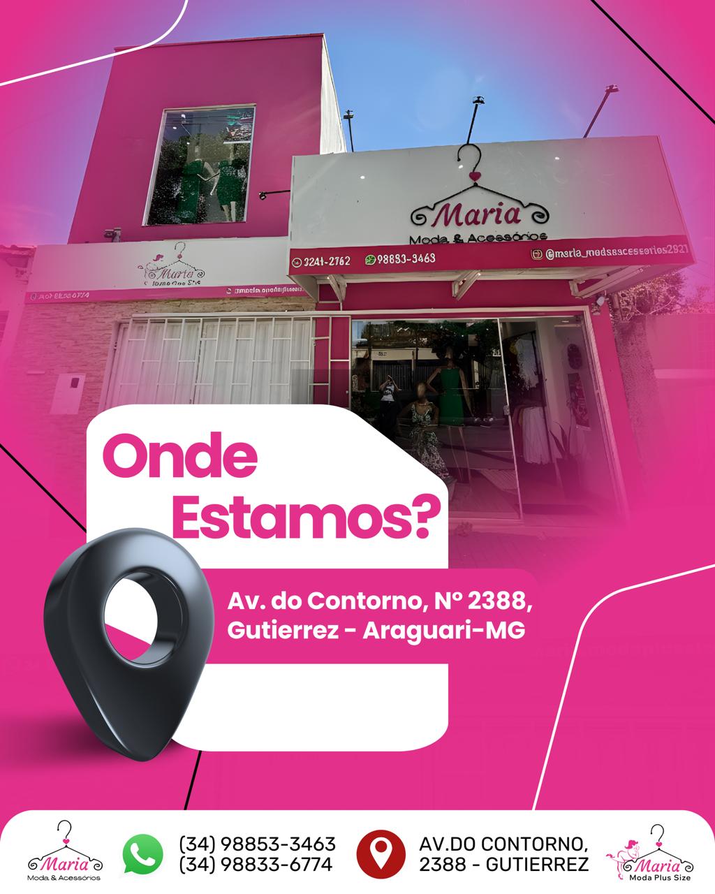 A Maria Moda Acessórios e a Maria Moda Plus Size estão localizadas em Araguari–MG, no bairro Gutierrez, em um ponto de fácil acesso.